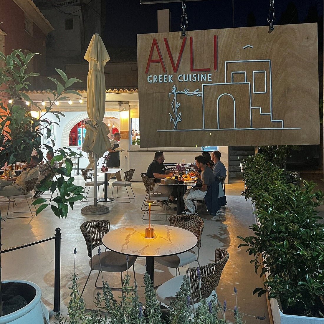 Located at the quieter end of the bustling waterfront in Benitses, Corfu, AVLI restaurant is quickly gaining a reputation as one of the area’s standout dining spots. Its name, “AVLI,” meaning “garden” or “courtyard” in Greek, perfectly reflects the restaurant’s beautifully designed outdoor space—a stylish, tranquil setting ideal for relaxed summer evenings by the sea.
