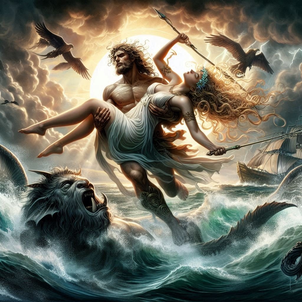 Boasting that her beauty surpassed even the sea nymphs, she incurred the wrath of Poseidon. In anger, the sea god sent a terrifying sea monster to ravage the coast, threatening the kingdom with destruction.
